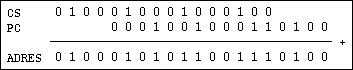- In onderstaande figuur is de optelling van het Codesegment register (CS)